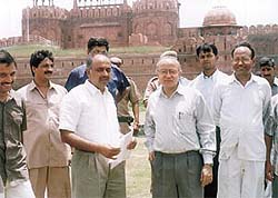 Union Minister in the PMO Vijay Goel reviewing the progress of the work at the Red Fort along with the MCD Commissioner in the Capital on Saturday. |