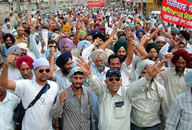 Fatehgarh Churian-Dera Baba Nanak road to protest against his death.