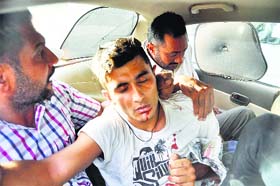 An injured criminal being taken to the hospital after a shooting incident in Ludhiana on Wednesday. Tribune