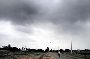 | Abound with clouds, the sky lends a lustrous gray tinge to the balmy evening in