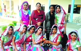 Achievers: Students of New GMT Public School with the silver medal they won in a folk dance contest at St Kabir Academy. A Tribune photograph