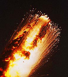 ![]() A Titan-4 rocket explodes over the Atlantic Ocean on Wednesday, 42 seconds after being launched from Cape Canaveral. AP US rocket explodes |