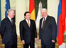 ![]() President Boris Yeltsin (right) smiles while speaking with Germany's Chancellor Gerhard Schroeder and head of the European Union's Executive Commission Jacques Santer (left) in the Kremlin in Moscow on Thursday. Yeltsin met with Germany's Chancellor and Jacques Santer on Thursday for talks on reviving Russia's economy. AP/PTI UK move will hit asylum-seekers ASYLUM-SEEKERS in the UK who try to launch a legal challenge over the way they have been treated by the British Immigration authorities will be cut off from all state support, including food and lodgings, under new Home Office proposals. |