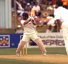 Sachin, Dravid rescue India HAMILTON, Jan 3 (PTI) A rock-steady Rahul Dravid in sight of his third century stood as the last hope after Indian batting caved in meekly yet again to give New Zealand the edge on the second day of the third and final cricket Test at the Westpac Trust Park here today. Dravid showed steely character absent in others barring Sachin Tendulkar and was unbeaten on 93 with wicketkeeper Nayan Mongia (zero batting) as India were a shaky 196 for five in their first innings to still be 170 runs behind the Kiwis, who advanced for 283 for five overnight to make a healthy 366. Javagal Srinath picked his third five wicket haul in Tests to return five for 95 as Indian pacemen bowled out the hosts 10 minutes after lunch. Venkatesh Prasad (2 for 61) and debutant seamer Robin Singh (Jr) (2/74) claimed a brace each. Openers Navjot Sidhu (1) and Ajay Jadeja (12) failed abysmally again to deal the Indian cause a major setback at 17 for two wickets before Dravid supported the aggressive Tendulkar (67) in a retrieving third wicket stand of 109. Tendulkar was powering away to his century but fell leg before to paceman Dion Nash in a dubious verdict by New Zealand umpire Doug Cowie which triggered yet another mini collapse to leave India in a familiar situation. But Dravid held firm and has struck 16 classy fours (152 b, 201 m). In roaring form, Tendulkar cracked 10 fours besides a six off left-arm spinner Daniel Vettori in his 93-ball essay lasting close to two hours, but Saurav Ganguly (11) and skipper Mohd Azharuddin (4) tamely edged catches to the slip cordon to leave Indian hopes in disarray. India have recovered a bit considering that they were tottering at 17 for two, and avoided the follow on (166) which looked a scary prospect at that stage. India, 79 for two at tea added 117 runs in the final session but lost three wickets and a 300-plus tally needed to ease the pressure, looked tough with only the tail left. India had a disastrous start as both veteran Sidhu and Jadeja perished playing attacking shots too early. Jadeja hit Simon Doull through covers, but fell the next ball, driving without accounting for the swing to mid-off Dion Nash. Doull and Cairns gained appreciable swing and finished with two wickets each. Sidhu square-cut a widish and bouncing Cairns delivery to keeper Adam Parore as India were two down in the fifth over. Tendulkar, coming at his usual number four spot, raced to his 20th Test fifty after early hiccups. He drove and flicked both Cairns and Doull and then lofted Vettori over long-on before reaching his fifty off just 75 balls (6 x 4, 1 x 6). He was on song after blasting three fours off Nash when he fell in the same over. Off the fifth ball he survived a loud shout for leg before but was adjudged out off the last ball as he was struck on his pads trying to flick a swinging delivery which seemed to be clearly missing leg stump. Dravid took charge playing his strokes and hit seven of his fours off Vettori, mostly square-cuts. Ganguly lofted the spinner over long-off for a six but was lured into a trap as Doull held back an angled delivery and Fleming at first slip accepted the tentative drive. Azhar took 22 balls to get off his mark, but fell with just two overs from stumps when he needlessly flashed at a wide ball from Doull to Fleming in the slips. Earlier, New Zealand resuming at 283 for five, were all out when Srinath forced last man Doull to hit uppishly to Anil Kumble at point to complete a quick two wicket haul to end up with his third five-wicket haul in his 35th Test. Srinaths previous similar effort had come against South Africa at Johannesburg (5/104) in early 1997. India could make no breakthrough for the first 40 minutes in the morning as overnight unseparated pair of Parore (21) and Paul Wiseman (13) denied Srinath and Prasad operating with the ball just four overs old on a helpful wicket. Prasad effected the breakthrough when Parores edge was taken by first slip V.V.S. Laxman, substituting for Azharuddin who was nursing a back strain. Debutant Robin Singh then had his moment has he left the stumps of Cairns in disarray with a peach of a late inswinger, as the batsman shouldered arms. He then forced Wiseman to edge between the wicketkeeper and first slip, and Ganguly plucked the chance low to his left. New Zealand were 355 for eight at lunch with their second Test tormentors Nash and Vettori looking to be in control, but Srinath quickly ended the association soon after lunch. He bowled Vettori for 24 before dismissing Doull as the last five wickets fell for only 55 runs. Scoreboard Bell c Mongia b Srinath 0 Horne b Srinath 63 Fleming c Dravid b Srinath 0 Twose c Mongia b Prasad 87 McMillan c Prasad b Kumble 92 Parore c sub (Laxman) b Prasad 21 Wiseman c Ganguly b Robin Singh Jr 13 Cairns b Robin Singh Jr 2 Nash not out 18 Vettori b Srinath 24 Doull c Kumble b Srinath 6 Extras (b5, lb19, w2,