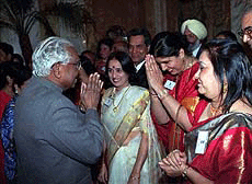 ![]() President K. R. Narayanan meeting with the prominent members of Indian community at Imperial Hotel in Vienna on Sunday. Photo by Subhash Chander