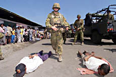 Firing at UN complex in Dili DILI (East Timor), Sept 23 (Reuters, AP) Foreign troops fired in the air today to warn off Indonesian troops collecting ammunition from a store here. Indonesian military spokesman Colonel Willem Rampangili told reporters his forces and the multinational force (Interfet) charged with restoring peace in East Timor were investigating the incident. Interfet had a misunderstanding about the activities of Indonesian soldiers who were moving goods from the store, he said. Misunderstandings sometimes happen in the field. However, a British officer said Gurkhas guarding the UN compound had opened fire after being shot at by men believed to be members of the pro-Jakarta militias. Referring to the Gurkhas she said: they were involved in a contact. They had shots fired at them by what we believe to be militia, but thats not been confirmed. It was unclear whether they were referring to the same incident, both of which took place near the United Nations compound. At least two shooting incidents were reported in Dili today, in the first gunfire in the citys centre since international peacekeepers arrived in East Timors devastated capital this week. Several bursts of automatic gunfire rattled across the mostly deserted city. In one incident, shots were fired near the sports stadium where refugees were seeking protection from pro-Indonesia militias. There were no casualties, said Lt. Col. Peter Welch, an Australian battalion commander, but the shooting sent dozens of people scurrying for cover toward Australian soldiers. Witnesses told The Associated Press the shots came from Indonesian army troops firing into the air in two passing trucks. But Welch said the shooting apparently was an apparent attempt by pro-Jakarta militia gunmen to be seen and heard. An hour after the shooting, three suspects were marched into battalion headquarters, their hands tied behind their backs. More shooting was heard near Dilis harbour, a vital link for the peacekeepers to unload men and supplies to sustain the 7.500-strong man force due to take position in East Timor. Major General Peter Cosgrove told reporters he was accelerating the deployment of his force, which already had about 3,000 troops on the ground in the bloodied territory. We will be