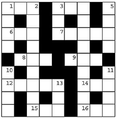 card, dice 6. Test that hopefuls have to pass well before admission to an American University (inits) 7. Element that many cultures refer to as the Mother 8. The gift of this comes in handy 9. Consolidate earth by ramming, pounding, etc. 12. Make up for a fault, sin etc. 14. Resting place for travellers 15. Tuberous root used as vegetable 16. Adam’s rib, in other