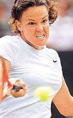 Davenport wins; Kafelnikov knocked out London, June 30 Third seed Davenport was 4-0 up within 12 minutes as Schnyder struggled with her serve. The Swiss left-hander fended off a break point to hold for 4-1 but could not shake Davenport, who finished off the set with an ace. Davenport, who signalled her comeback from injury with victory at Eastbourne last week, went 4-1 up in the second set before Schnyder pulled back to 4-3. But the American won the next two games. Davenport, a beaten finalist last year, will play either 14th seed Jelena Dokic of Yugoslavia or No 21 seed Barbara Schett of Austria on Monday. Nadejda Petrova became the second unseeded Russian to reach the fourth round when she beat Silvia Farina Elia 6-3 6-3. Petrova was too powerful and accurate from the back of the court for the 16th-seeded Italian and the 19-year-old will now play either defending champion Venus Williams or fellow Russian Elena Likhovtseva in the last 16. Venus’s younger sister Serena beat Petrova in both the Australian Open and the French Open where she also reached the fourth round. Petrova broke Farina Elia’s serve in the fifth game of the first set, which she wrapped up in 27 minutes after a rain break. The Russian broke to love for 3-2 in the second set after a rare excursion to the net set up the break point, and won the match on her second match point in 57 minutes to join unseeded Lina Krasnoroutskaya in the last 16. Henman overcomes Schalken Britain’s Tim Henman reached the last 16 of the Wimbledon men’s singles here yesterday defeating Sjeng Schalken of the Netherlands 5-7, 6-3, 6-4, 6-2 but not before giving the Centre Court faithful a few uncomfortable moments. He next plays Todd Martin of the USA for a place in the last eight where his likely opponent would be top seed and title-holder Pete Sampras, who has twice beaten him at the semifinal stage. The No 6 seed, seeking the first British men’s singles title at Wimbledon since Fred Perry in 1936, struggled for consistency in the overcast, gusty conditions against a towering opponent who is at his best on grass. “It was the ideal match for me,” said Henman. “I didn’t have to go five sets, but I knew I was in a battle and had to come up good in pressure situations. But that was plenty close enough. “For a set and a half I was uncomfortable out there. I had a clear understanding of the way I wanted to play, but he was making life very difficult.” The opening set of the two hours 51 minutes match went with serve until Schalken broke through in the 11th game and then converted in the next game on his fourth set point. With the crowd subdued and the Union Jacks folded away Henman continued to struggle in the second, but a break of serve in the sixth game provided the spark the 26-year-old British player needed to level the match. Henman warded off three break points from 0-40 in the fourth game of the third set as the tie hung in balance. Then in a crucial ninth game Henman, on his sixth break point of the set, joyously whipped a forehand down the line to edge ahead for the first time in the match. That shot set the crowd alight and Henman’s spirits rose with them closing out the set on his following serve with Schalken netting a backhand block. The 24-year-old Dutchman, who recorded the second-longest match ever at Wimbledon last year when he lost a third round match 18-20 in the fifth set to Mark Philippoussis, had his back to the wall and he needed some inspired play to save two break points in the third game for a 2-1 lead. But his serve was tightening and a further two double faults two games later gave Henman the opening he was looking for, the Dutchman netting a forehand off a rasping Henman return for the break. The Union Jacks were flying in the fading light and Henman gave his fans what they had come for by breaking Schalken again for a 5-2 lead and then serving out comfortably for the match. His reward was a standing ovation as hopes rose of an end to the 65-year-old British drought that began three years before World War II started. Turning to the match against Martin on Monday, Henman said: “ he’s a dangerous grass court player and has been in big match situations before, so at this stage it’s going to boil down to who plays best on the day and I hope that is going to be me.”