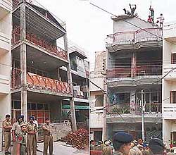 Workers of the enforcement staff of the Chandigarh Housing Board demolish an illegal structure in a house in Sector 46-C, Chandigarh, on Friday. Picture on the left shows encroachment on government land by the owner of another house in the sector. Tribune photos Manoj Mahajan |