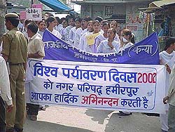 Environment Day was celebrated here by the Himachal Chamber of Commerce and Industries and Department of Environment Control Board. Mr Onkar Sharma, Deputy Commissioner, Sirmour, said there was need to create awareness about environment among the masses. He requested industrial unit and the municipal committee to dump solid waste properly. The units should treat solid and