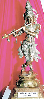 Festival of crafts The masterpieces will, however, remain on display at the Cottage Emporium. Craftopia has on display rare collections of masterpieces in wood, bronze, marble and looms. The bronze statues inspired by the school of metal sculpting dating back to the period of the Gupta and the Chola kings, are a visual delight. The piece that attracted the maximum attention was that of Lord Krishna playing his flute, crafted in panchioha, an alloy. Poetic rendition of the Tanjore paintings patronised by the Maratha rulers have also been reproduced. The splendour of the paintings in real gold and gems were recreated for their aesthetic appeal. Also on display will be figurative scriptures inspired from temple carvings, each one with a different story to tell. The Cottage Emporium has also revamped its women’s section. The floor will offer a wide collection of Managalgiri, Bhagalpur, Muga and Patola saris and dress material and a plethora of accessories. For the festive season, there are 24-carat gold coins with 3D coloured images of Goddess Lakshmi and Lord Ganesha.