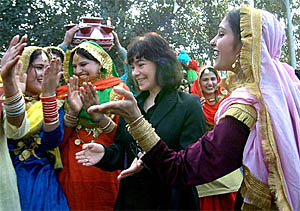 the UK dances with students in traditional dresses in Amritsar on