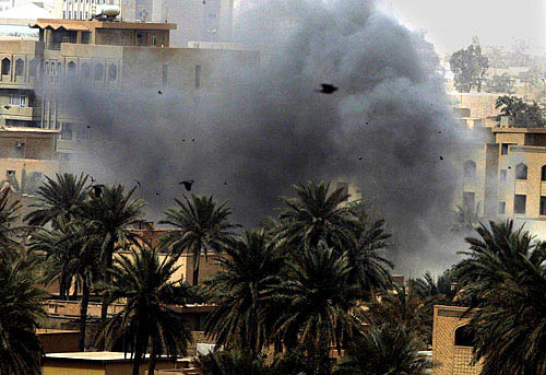 Smoke rise from central Baghdad high-rises on April 6 2003. Bomb blasts and artillery fire thundered across Baghdad on Sunday as US forces tightened their grip on the capital. — Reuters