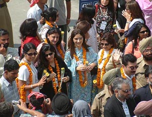 Members of the India-Pakistan CEOs’ Business Forum after crossing over to India from Pakistan at Wagah joint checkpost.