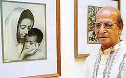 Print maker Nirmal Prakash works in his studio in Sector 21 in Chandigarh