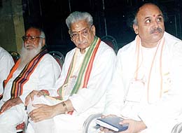 Maharashtra Nivas Hall. Mr Praveen Togadia, Acharya Giriraj Kishore and Mr Bhupendra Modi and several other office-bearers of the VHP were present on the opening day of the sammelan. Mr Togadia accused the Prime Minister Atal Bihari Vajpayee of not protecting the interests of the Hindus for political gains. Still, the BJP, under his leadership, had to quit power, he observed. He said Ram janmabhoomi and Ayodhya were now the two undisputed issues on which the VHP would not make any compromise with the present Manmohan Singh government. Mr Togadia said they would finalise at the conference the exact date and time for beginning the construction of the Ram temple at Ayodhya without waiting further for the Supreme Court’s judgment. The Dharma Sammelan began with the chanting of Vedic hymns and offering of