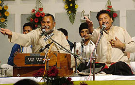 Wadali brothers perform at Red Cross Bhavan in Jalandhar on Saturday.