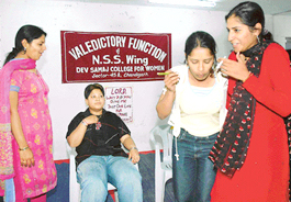 Volunteers of the NSS wing of the Dev Samaj College for Women, Sector 45, present a skit at their annual function in Chandigarh on Wednesday.