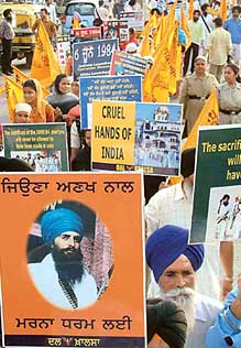 Fatehgarh Churian-Dera Baba Nanak road to protest against his death.