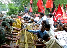 intervene in Gurgaon New Delhi, July 26 “An all -India movement could be launched if a settlement is not reached within the next couple of days. Even the Honda dealers could face the music,” warned CPI General Secretary A B Bardhan. Although the agenda of the meeting was to brief the Communists of the recent US trip by the Prime Minister, the “brutal” attack on the workers of the Honda Motorcycles and Scooters India Ltd dominated the proceedings. Manmohan Singh informed the Left leaders that he would make a statement on the US trip on Friday. Talking to reporters after a 90-minute-long meeting, he said the Left leaders demanded the immediate suspension of police and district administration officials responsible for the “brutal” attack and release of leaders and activists who have been arrested and medical treatment of those injured. Asked to comment on the reported statement of a Japanese official that the incident would adversely affect the inflow of FDI into India, Bardhan said: “If they (MNCs) do illegal things, we will stop them. They have to abide by the law of the land.” Left leaders urged Manmohan Singh for the intervention of the Central Government as a large number of workers had been injured in the incident and the law enforcing agencies had attacked the peacefully demonstrating workers and the incident had continued for the second day today. They said the workers had been thrown out of the Japanese multinational company for attempting to form a trade union. They also urged the Centre to ensure that the injured workers were given proper treatment, as the medicial facilities in Gurgaon were inadequate to meet the needs of so many persons at the same time. Manmohan Singh, sources said assured the Left leaders due care would be taken for the medical treatment of the workers and expressed concern at the continuing agitation in Gurgaon. The meeting was also attended by Harkishan Singh Surjeet, Prakash Karat and Sitaram Yechury of CPM, D Raja of CPI, RSP's Abani Roy and Forward Bloc leader Debabrata Biswas. On the US trip and the controversy surrounding the civilian nuclear deal, the Left leaders said Manmohan Singh assisted by the External Affairs Minister Natwar Singh explained the highlights of the joint statement issued after the Prime Minister’s meeting with US President George Bush. When asked whether the Left parties would raise the Indo-US issue in Parliament, Bardhan said: “Of course, we will.” |