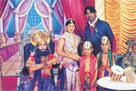 a distinct nautanki ambience. The setting is a tent-with-silk-drapes and