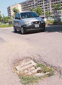 Prabhjot Singh, Chief of Bureau of The Tribune, fell from his scooter on Sunday night on the road behind the Punjab and Haryana Civil Secretariat near the Chandigarh Club when his scooter wheels skid on a poorly maintained sewerage cover.