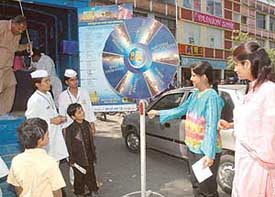 The Election Express brought Schwarzkopf Palette Sabsey Favourite Kaun to the city on Sunday. The one-of-its-kind award show, election express, enable the city residents to decide who they would like to shortlist as their Sabsey Favourite of 2006. Besides exciting prizes given out, there was a chance for the winner of a lucky draw to meet Arshad Warsi himself.