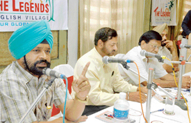 Speakers hold discussions during a talk show on Indo-Pak relations organised by the Legends English Village