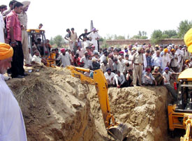 Hundreds prayed for the life of two labourers of Gopalpur village in Ludhiana district who were buried under earth when walls of the well they were digging caved in this morning.