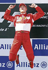 Michael Schumacher rejoices after winning the French Grand Prix at the Magny-Cours circuit on Sunday. — Reuters