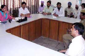 The SDM, Malerkotla, Dr Indu, listens to suggestions at a meeting held in Malerkotla on Monday.