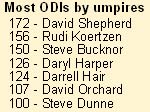 Only England’s David Shepherd and South African Rudi Koertzen had officiated in more matches than the West Indian Bucknor and only four others have done 100 or more. “I never thought I would get this far as, back when I started, there was the chance to stand in just a few matches every year,” the 60-year-old Jamaican said. “But now I can look back and think about the ICC World Cups and many other matches I have umpired and it makes me feel very proud.” ICC President Percy Sonn paid a special tribute to Bucknor when he said: “To reach the top in any profession you have to be very good and Steve is exactly that. “This landmark is a tribute to Steve’s skill, dedication and consistency, all qualities that are needed to be a top umpire.” In addition to umpiring in 150 ODIs, Bucknor has also stood in more Test matches — 113 — than anyone else, but cricket is not the only sport in which he officiated at the top level. He was also an international football referee, and there was a chance we could have seen him take charge in World Cup football. “Not really and I did not leave football for cricket,” he said. “It was just that I got too old for football refereeing when FIFA lowered its retirement age from 50 to 45 so that gave me the chance to focus on cricket.” Bucknor made his ODI debut in March, 1989, when he stood in the match between the West Indies and India in Antigua. The home side, led by Vivian Richards, won that match by eight wickets thanks to 117 from Gordon Greenidge and four wickets from Ian Bishop. India was captained by its current Chairman of Selectors Dilip Vengsarkar, who top-scored with 88. Bucknor made rapid progress and had the honour of standing in the 1992 World Cup final between Pakistan and England at the Melbourne Cricket Ground. He would go on to officiate in three more World Cup finals, a unique record that might go unmatched. “That first World Cup was a real highlight for me,” he said. “I was only a relatively junior umpire back then and never thought I had a chance of standing in the final but I was chosen and have been fortunate enough to stand in every one since.” “Hard work, physical fitness and being mentally prepared was the secret behind his longevity,” he said . “The hard work comes from constantly reading up on the laws and the playing conditions so you always know what you are doing. “Physical fitness is important too because if you are not right in that area then you will struggle to do the job. Fitness for me is all about maintaining a strong mid-section of the body, the abdominal and back muscles. “Standing for seven or eight hours a day is hard work but if those muscles are right then you can do it. “On top of that you have to be mentally prepared and that means knowing about the teams you are going to umpire and also being aware of what conditions you will face and dealing with them so you can concentrate on the job in hand.” And how have things changed for umpires during his time at the highest level? “Technology has made a big difference,” said Bucknor. “When I started, there was barely any television coverage in some countries but now almost everyone has access to matches. “That means there are many more living-room umpires now who see the correct answer to an appeal after watching 10 replays.” Bucknor is now eager to officiate in the World Cup at home next year. “That is an exciting prospect,” he said with a smile. “It would be nice to stand in final number five.”