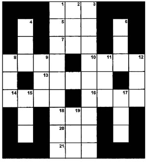 Across 1. India’s golden tourist destination 5. Mischievous person, especially, a child 7. In sports, abbr for a referee 8. India’s governing body that deals with telecommunications (abbr.) 10. English town with a famous college 13. Light, humorous play 14. International body governing trade etc. (inits.) 16. Sharp or sour to the taste 18. Haryana’s sports city 20. International body dealing with labour issues (inits.) 21. Sealed container for food etc. Down 1. Relating to the old 2. Shout used to approve, encourage 3. Fond attachment, devotion 4. What every golfer knows well 6. International body dealing with health matters (inits.) 8. Small strip serving as mark or label 9. Towards the stern or tail 11. The cup that cheers 12. How Internet is abbreviated as 15. Division of a play 17. Spare this and spoil the child 19. ____ Singh, great Phulkian chief Solved