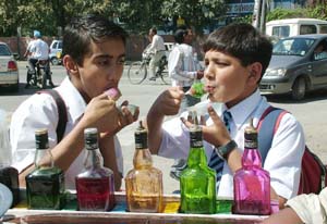With the rising temperature in the city, these ice-candies come to the rescue of the school children who appear to enjoy every slurp of it on Tuesday.