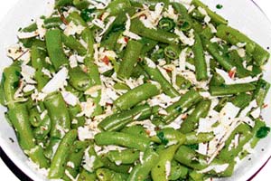 To return to the beans; these come in many varieties—flat/broad, French. The last named is to be technically correct is Haricot vert a.k.a. string beans in the US. These were at first grown for their seeds and it was only in the 18th century that Italians began to consume the pods and world soon followed them. The French found the vegetable, imported from Spain and Algeria, much too expensive for their taste and used the beans sparingly till the 19th century. The beans continue to be imported by that country (out of season) from Senegal and Kenya and it is ironical that the beans carry France’s name. Even, illiterate villagers in remote Himalyan villages grow the crop identify it as farash bean—an obvious corruption of France! French beans are low in calorific value (39 calories per 100gm) contain 7 per cent carbs and are a rich source of vitamins. It is surprising that many of us, unaware of the veggy’s virtues make little use of it. Mostly it is encountered in the greasy, spice-laden mess named mixed vegetables totally overshadowed by cauliflower florets, paneer, and carrots. Small dices in cutlets, veg pulav or biryani are almost invisible. It is easy to overcook the beans and kill the colour. If one is not careful while buying the beans it is quite possible to land with inedible stringy lot that justifies the American name but that is no consolation. Trust us, follow the poriyal recipe we share with you this week and you will fall in love with the beans. An easy to prepare, satvic yet supremely satisfying dish.