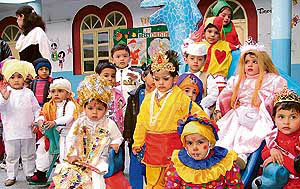 Students of Love Dale School celebrate Lohri on the school campus in Ludhiana on Friday.