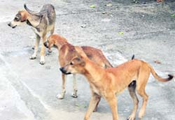 Stray dogs continue to hound streets of Ludhiana. A Tribune photograph