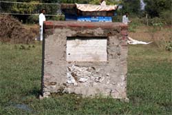 The foundation stone for a hospital laid in 1971 in village Chak Fateh Singh Wala by Surinder Kaur, wife of Chief Minister Parkash Singh Badal, stands alone on a piece of panchayat land. Tribune photo: Kulbir Beera