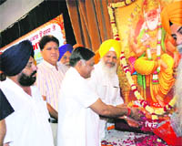 Hira Singh Gabria and Manoranjan Kalia Cabinet Minister Punjab paying tributes at state level Vishwakarma Day celebrations at Guru Nanak Bhawan in Ludhiana.