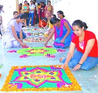 Rangoli contests marked Diwali celebrations in city education institutes. — A Tribune photograph