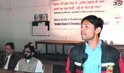 Dehradun, November 18 Social Activist Aloka Niyogi said terrorism today is a worldwide phenomenon and collective initiative is required to fight against terrorism. Earlier, Uttarakhand president of Jago Bharat Dr. Dipankar Rai read out the message of Speaker Harbans Kapoor, in which latter had welcomed the efforts of ‘Jago Re Hindustan’, to fight against the menace. He said the campaign has been undertaken with an aim of uniting people in fight against terrorism. He also disclosed that on October 18, over one lakh signatures have been collected against terrorism from Uttarakhand. He also disclosed that October 19, candle peace march was carried out from Gandhi Park to Secretariat. Dr Rai also mentioned that another workshop was scheduled to take place at Himalayan Hospital on November 27 followed by two other interactions at DIT and MKP on December 3 and 11 respectively. |