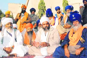 Members of Sant Samaj address the media in Amritsar on Monday. Photo: Vishal Kumar