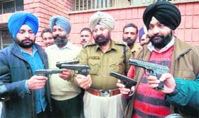 Special narcotics cell officials with the arms seized near the Indo-Pak border. Photo: Vishal Kumar |