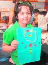 At the workshop conducted by Ritu Beri, a teacher from Euro Kids, watch your child make colourful carry bags from newspapers, designer envelopes from hand made paper, shagun envelopes and add the fun factor by creating their own little masterpieces on the potter’s wheel. “The idea behind this workshop is to help kids be in touch with their creative side, in an eco-friendly manner. Recycling paper for simple yet trendy artwork and using all natural things for the purpose will inculcate awareness amongst them. It is also a good way to spend time with your kid and a fun weekend activity,” says Ritu. As for the little ones, they had fun making pots, diyas, and signature style paper bags. “The first day saw very enthusiastic response. We have got calls from parents who want us to continue the workshop for a little longer. It’s a constructive way to channelise their energy as well as satisfying their creativity,” says Alka, manager operations, Fabindia. The workshop includes crafts making sessions from 11 am to 1.30 pm and pottery making sessions starting 11am to 6 pm. — Neha Walia |