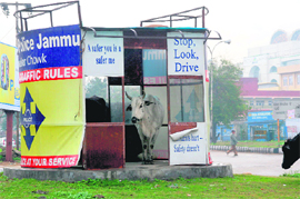 Traffic situation in the city is worst as cops are rarely present at places where they should be. They are never seen at canopies installed for them. Instead, cows are mostly seen enjoying the comforts of a canopy. (See picture) (Contributed by Ashutosh