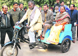 Kamlesh, Mayor, Municipal Corporation, here, today formally delivered 5 solar battery operated rickshaws to the eligible rickshaw pullers, registered with the Municipal Corporation.
