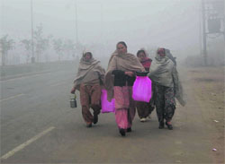 Amritsar coldest in plains Women walk down a city road on a foggy Sunday morning in Amritsar. Photo: Vishal Kumar.