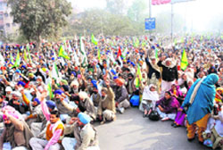 Bathinda, January 21 Accusing the union and state governments of adopting anti-farmer policies, the agitators belonging to various unions, namely the BKU (Ekta), BKU Ekta Punjab (Dakaunda), Punjab Khet Mazdoor Union and Pendu Mazdoor Union (Mashal), kept the National Highway blocked for about four hours and raised anti-establishment slogans. The agitators also handed over a memorandum to Bathinda SDM KPS Mahi, who received it on behalf of the Deputy Commissioner, seeking an end to Phul’s “isolation” in jail and his unconditional release, along with the withdrawal of charges levelled under the Unlawful Activities Act. Targeting the union government, the agitators opposed Operation Green Hunt launched in Orissa, West Bangal, Chhattisgarh, Maharashtra, Jharkhand and Andhra Pardesh. They termed it a forcible attempt of the union government to get land vacated from poor tribal farmers at gunpoint. Farmers alleged that the arrest of Phul was also a part of the union government’s well-planned move, as Phul used to oppose the declaration of special economic zones and transferring of agricultural land to capitalists. Lashing out at the government in his speech, state president of the BKU (Ekta) Joginder Singh Ugrahan said, “Finding Surjit Singh Phul to be a hurdle in the wicked policies of politicians, he was presented as a Naxalite and booked.” “Though we are said to be living in a democratic country neither the state governments nor the union government tolerates unions that raise their voice against the infringement of farmers and labourers’ rights,” alleged general-secretary of the union Sukhdev Singh Kokri Kalan. Taking preventive measures, the district police chief had deployed one SP, three DSPs, eight SHOs and 600 other cops in the area . |