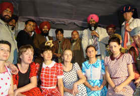 Foreign artistes being honoured during the international art and cultural festival at village Jhoke Harihar in Ferozepur. A Tribune photograph