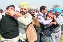Ghudda (Bathinda), February 21 The protestors started raising anti-government slogans when the CM was addressing the gathering. The incident emerged as a total failure of intelligence agencies, as the senior officials did not have prior intimation about the protest. However, a large number of policemen tried to stop them. Several protesters lost their turbans, when they were being dragged out of the rally ground. Besides hurling abuses to the protesters, some of the cops did not even mind in pulling the Sikh youths from their hair. The protesters, who were adamant in leaving the rally ground, kept on raising slogans “Punjab Sarkar Murdabad” and sustained mild lashing of canes from the cops, before being pushed into the police lorry. Despite witnessing the whole incident, the CM kept on delivering the speech, but he mentioned, “As the elections will close, such incidents will become regular happenings. These protesters want everything to be given to them, but it is impossible as we have to cater to the whole state in a rationale manner.”